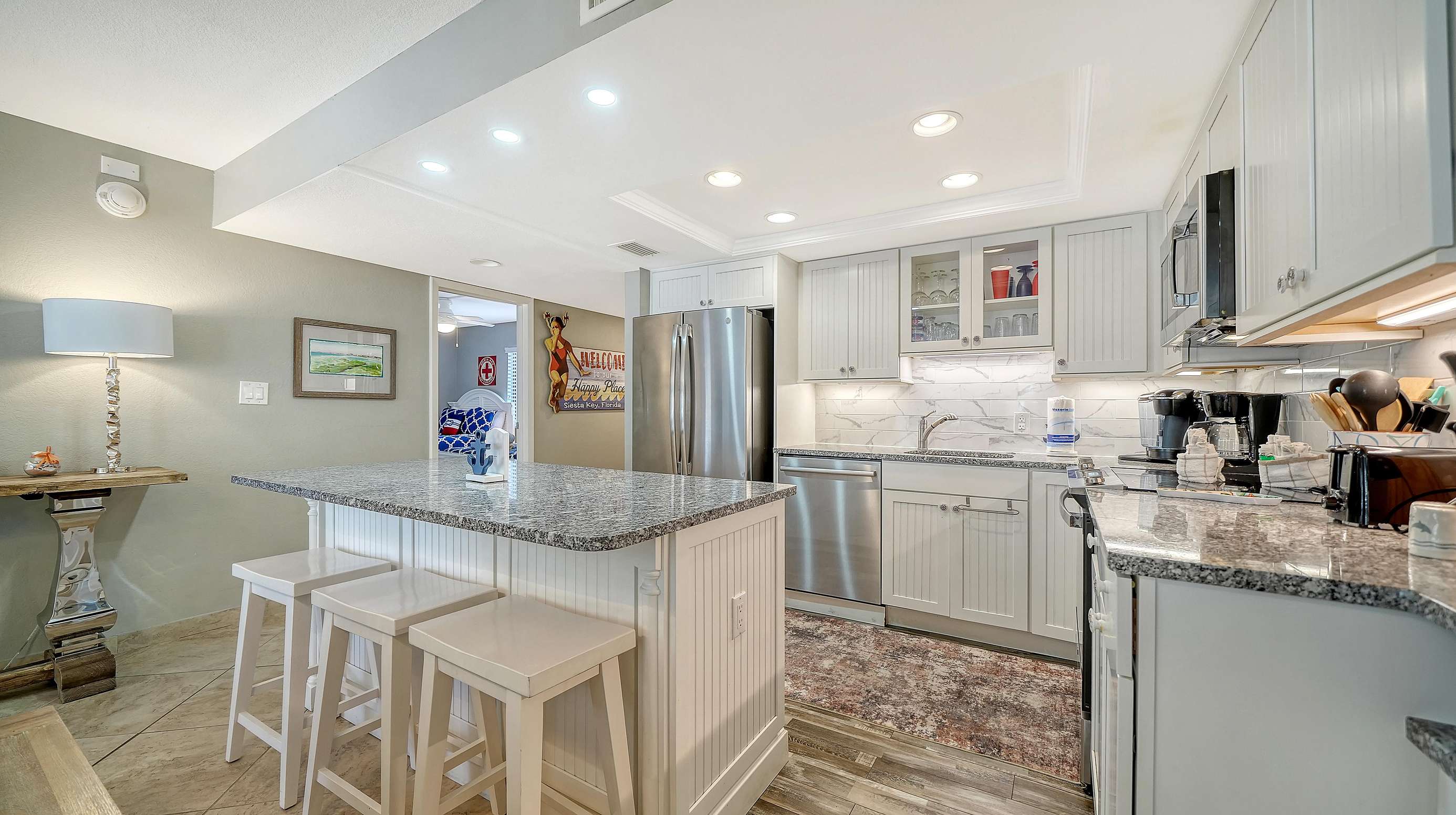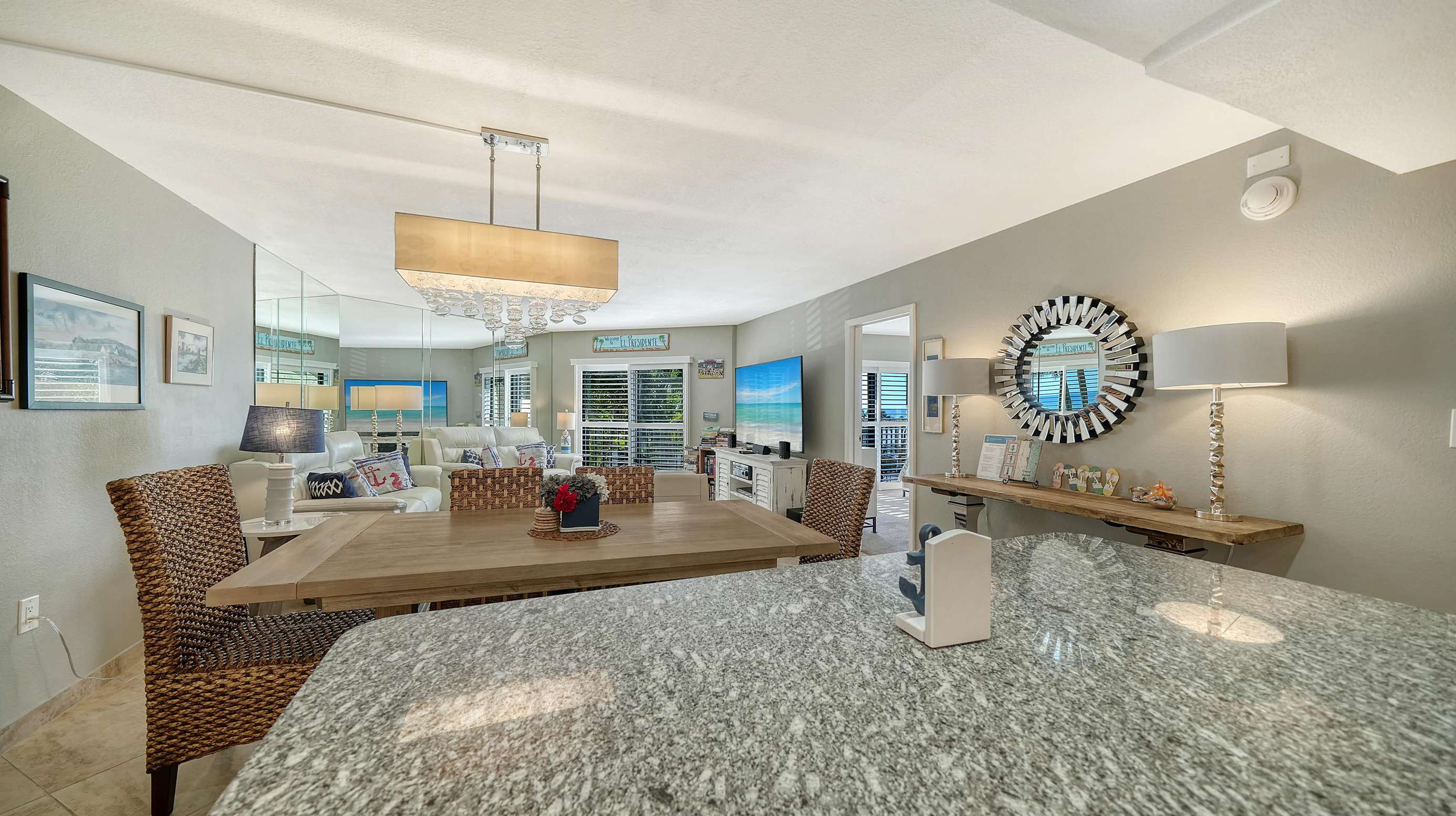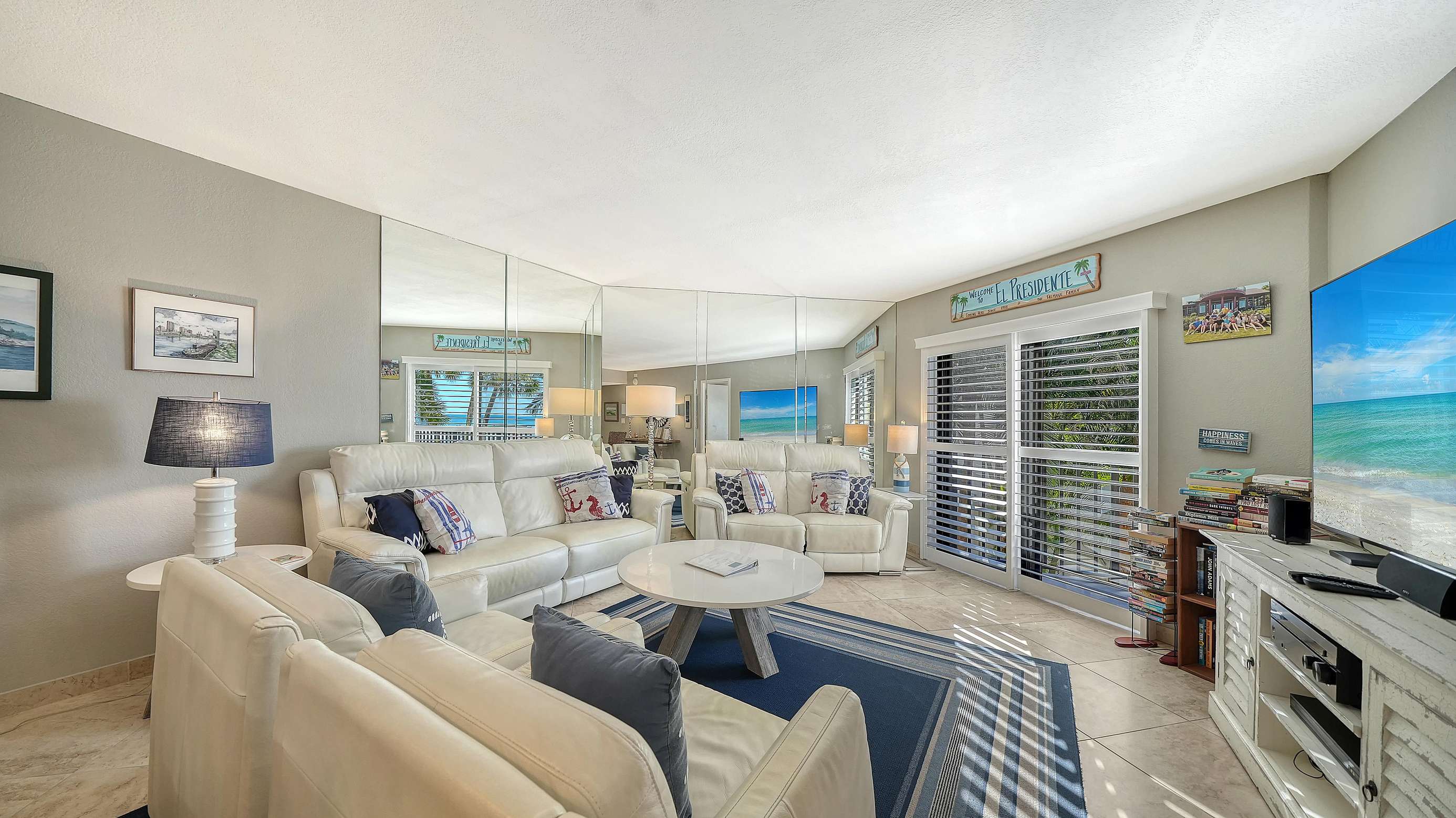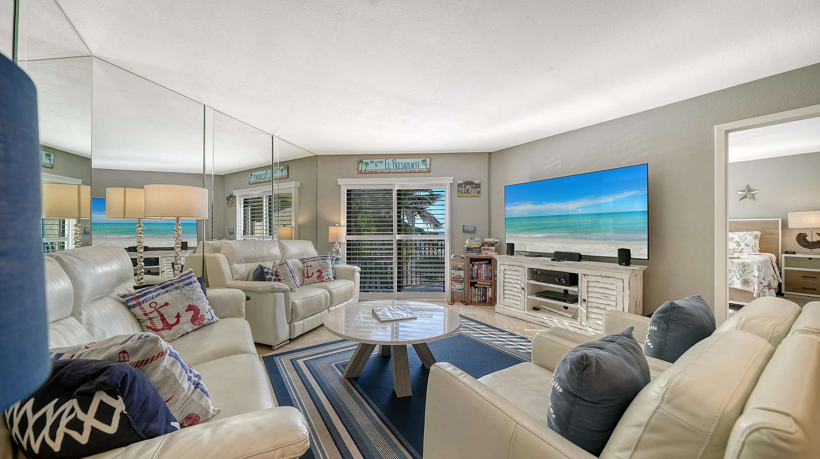 El Presidente Condominiums offers this two bedroom two bathroom vacation rental on the white sands of Siesta Key on the Gulf of Mexico