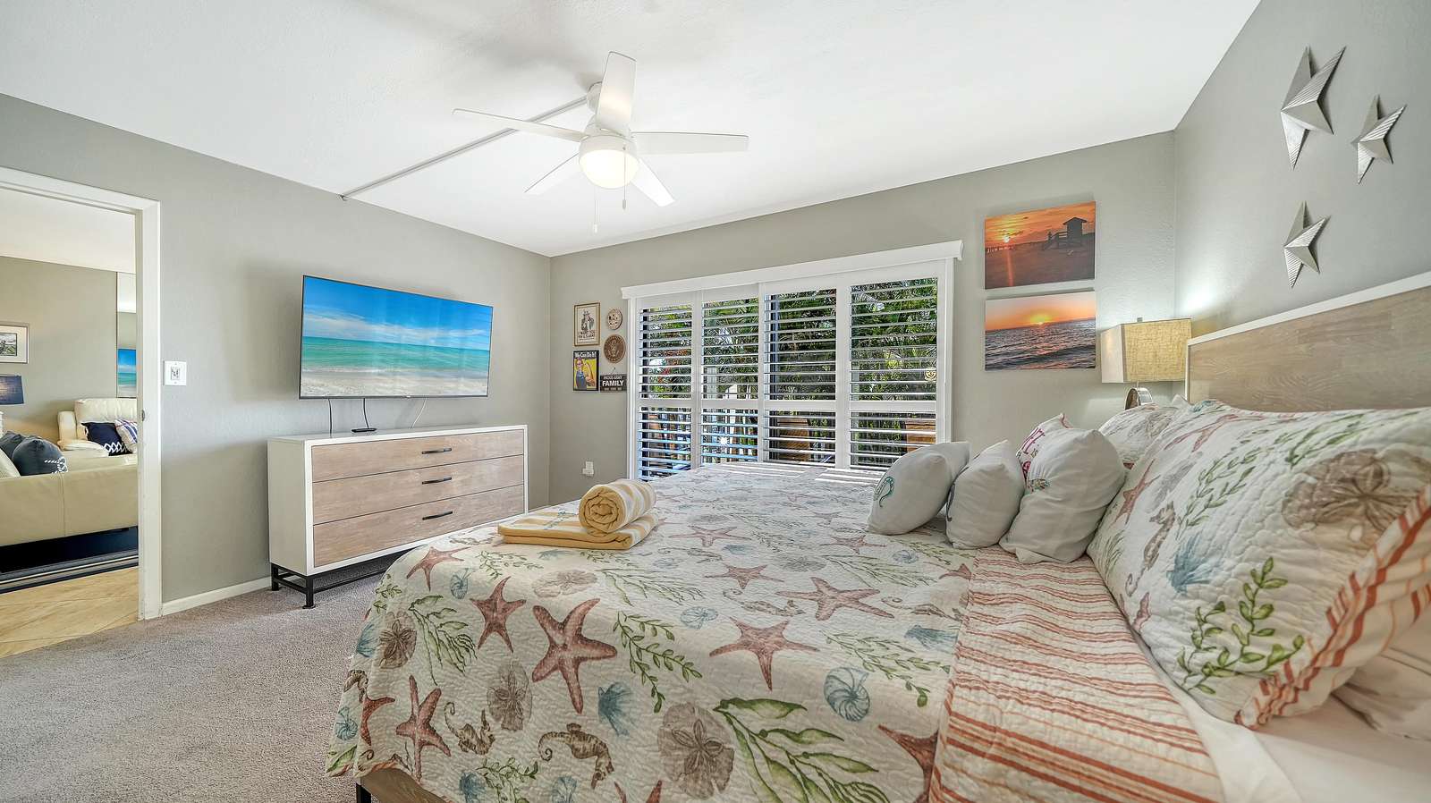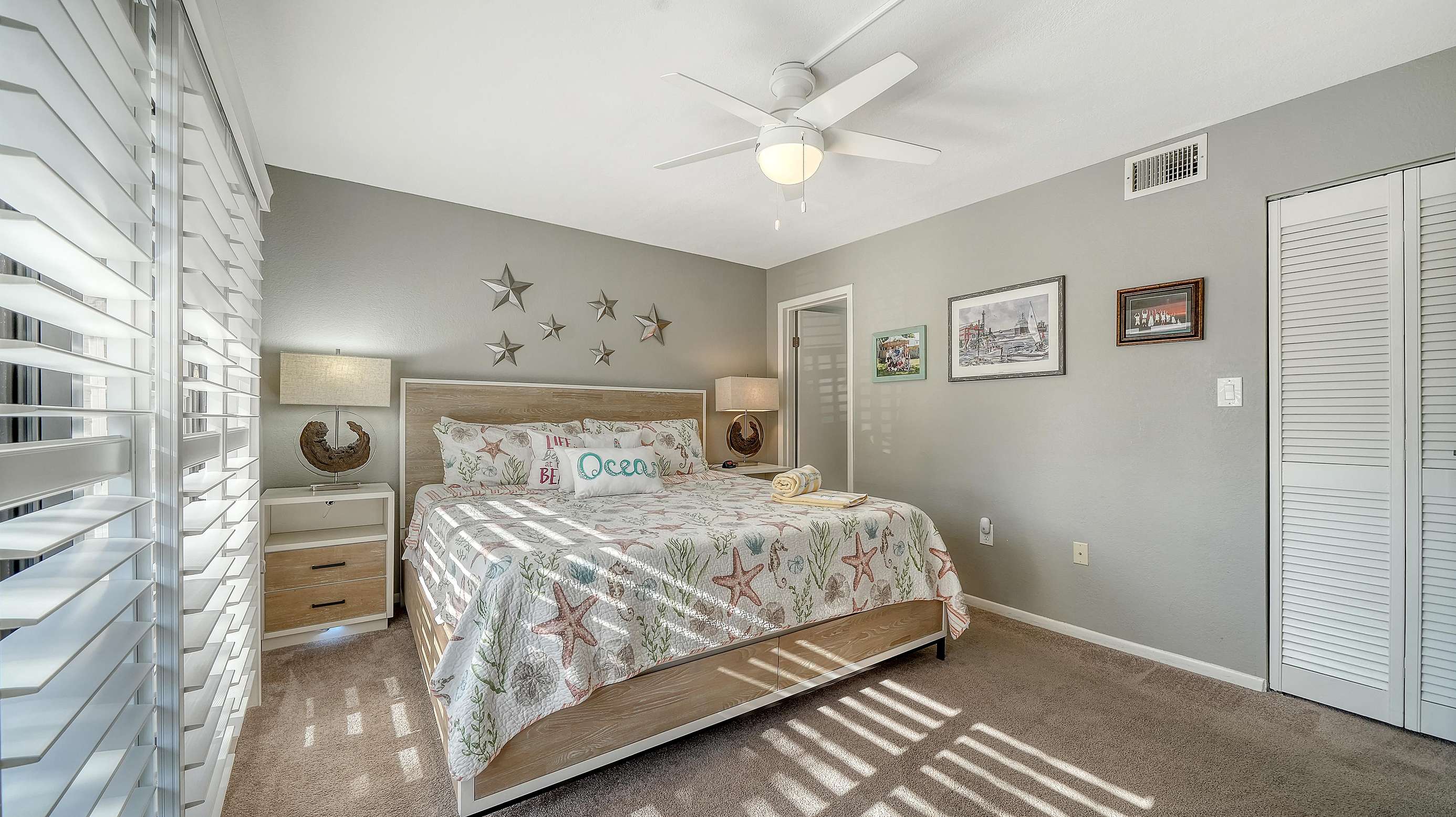 Blender, Carpet, Coffee Maker, Kuerig coffee maker, 2 Double Beds in the guest Bedroom, King Bed in the Master, DVD, Flat Screen TV, Fully Equipped Kitchen, Hair Dryer, Iron, Microwave, Mirror Wall in Living Room, Solid Countertops, File Floors, Toaster, Washer/Dryer, Wireless Internet