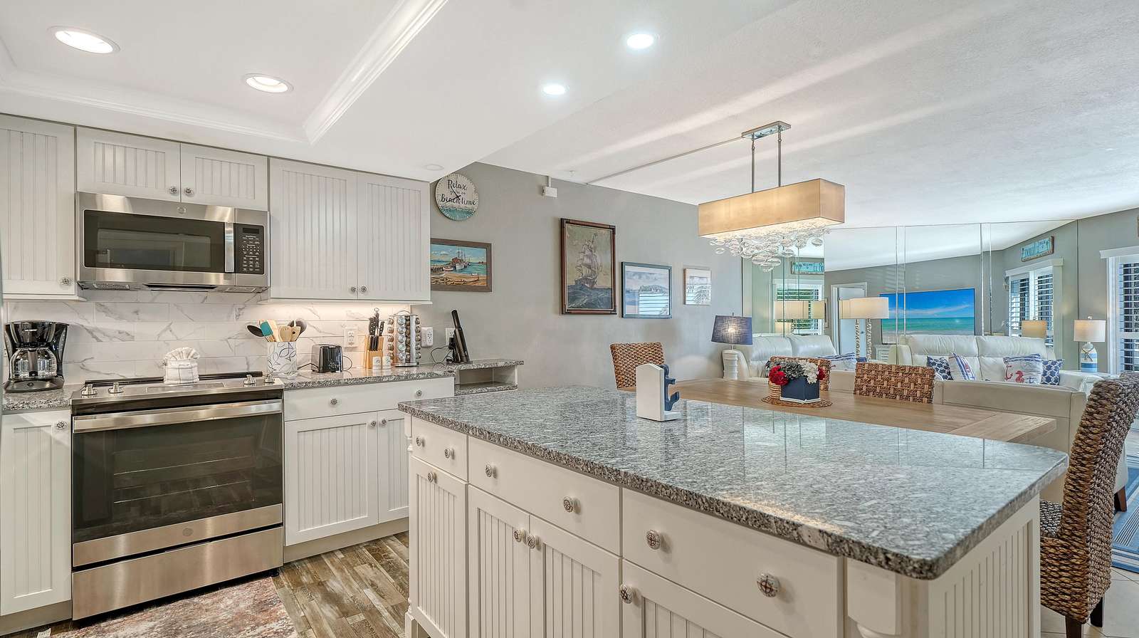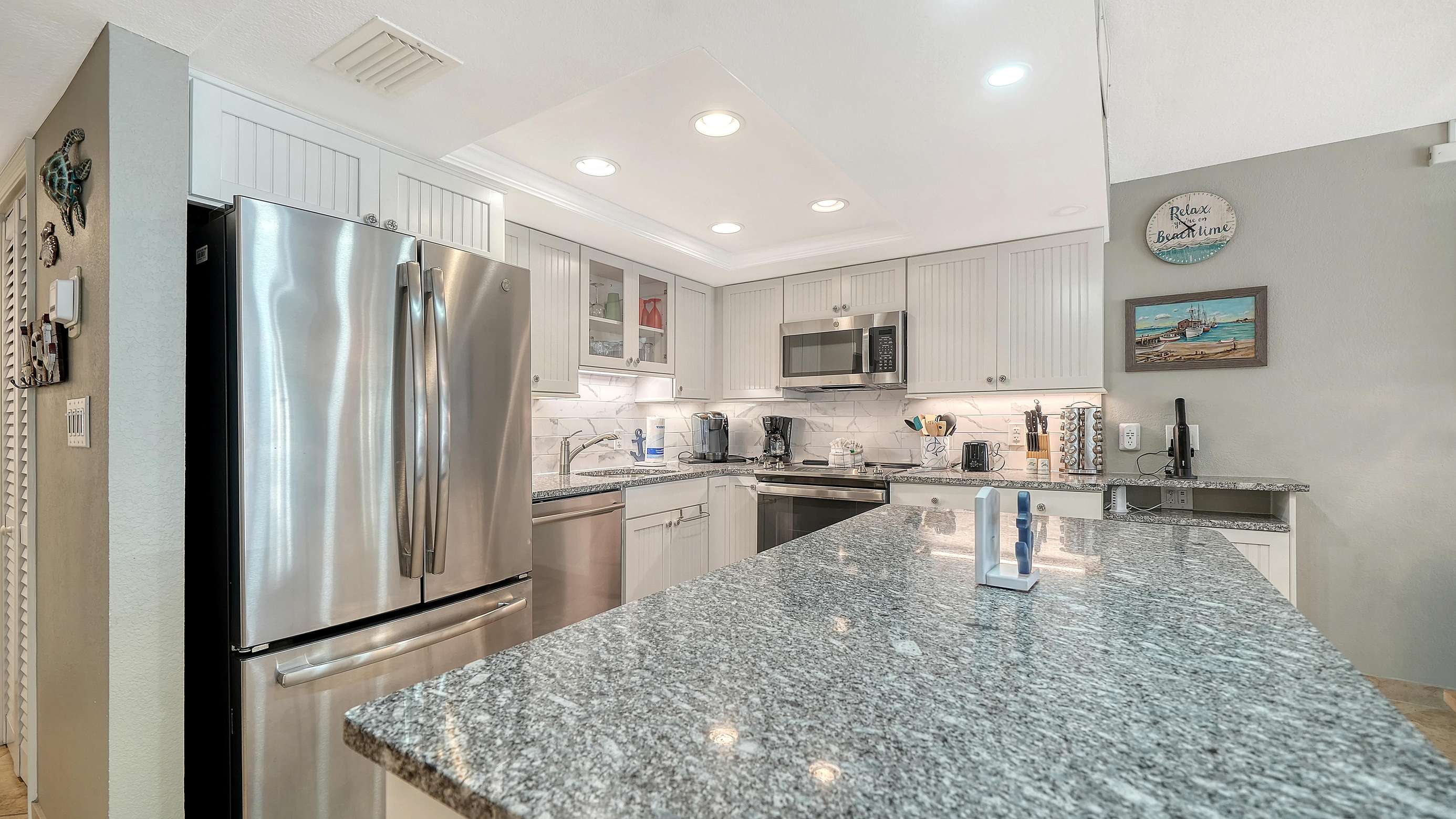 Great 2BR/2BA with wonderful Gulf Views from living room, master bedroom and balcony! Beautiful updated kitchen. Huge flat screen TV in the living room! King in master, 2 double beds in guest room and sofa sleeper in living room.