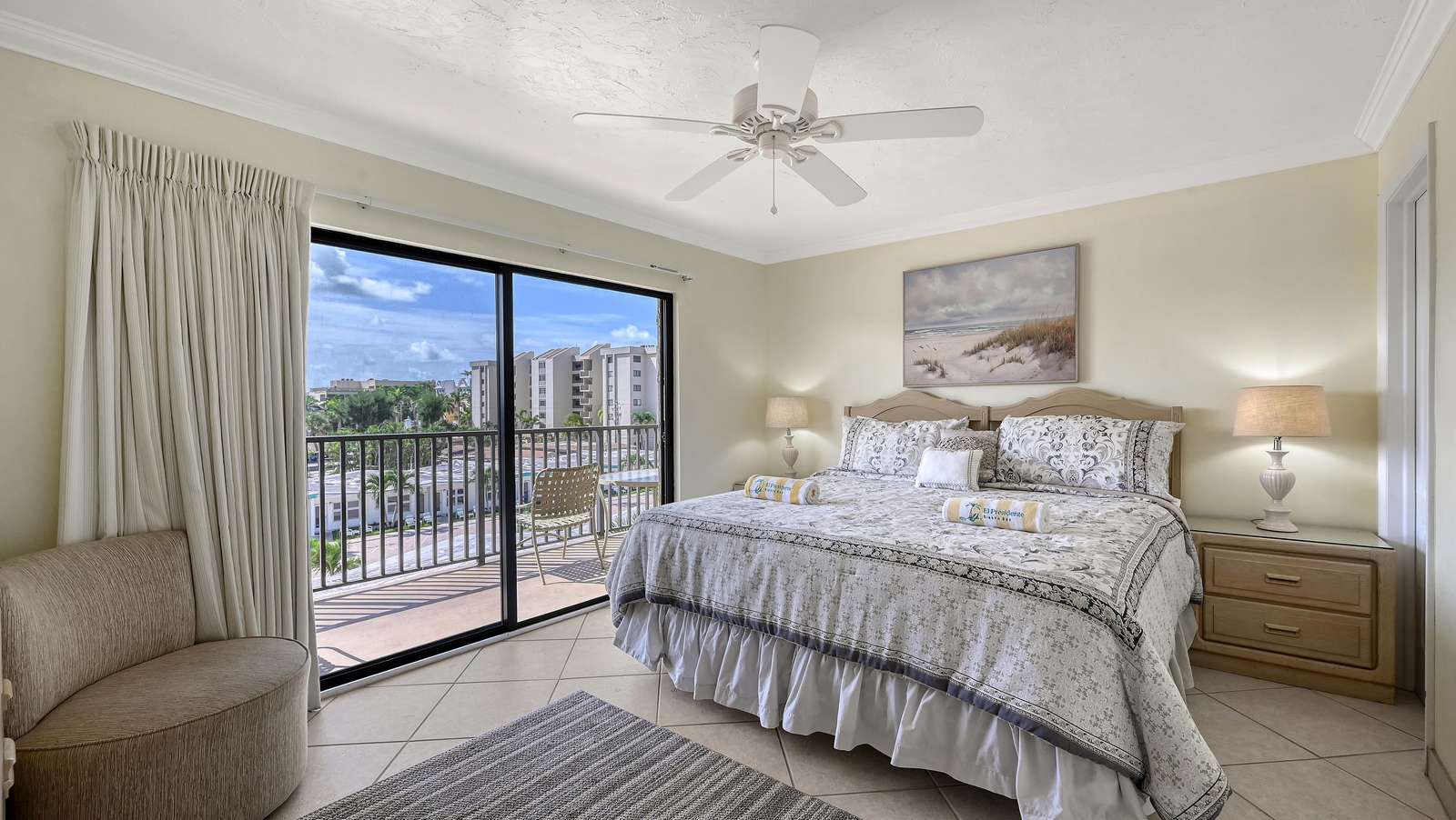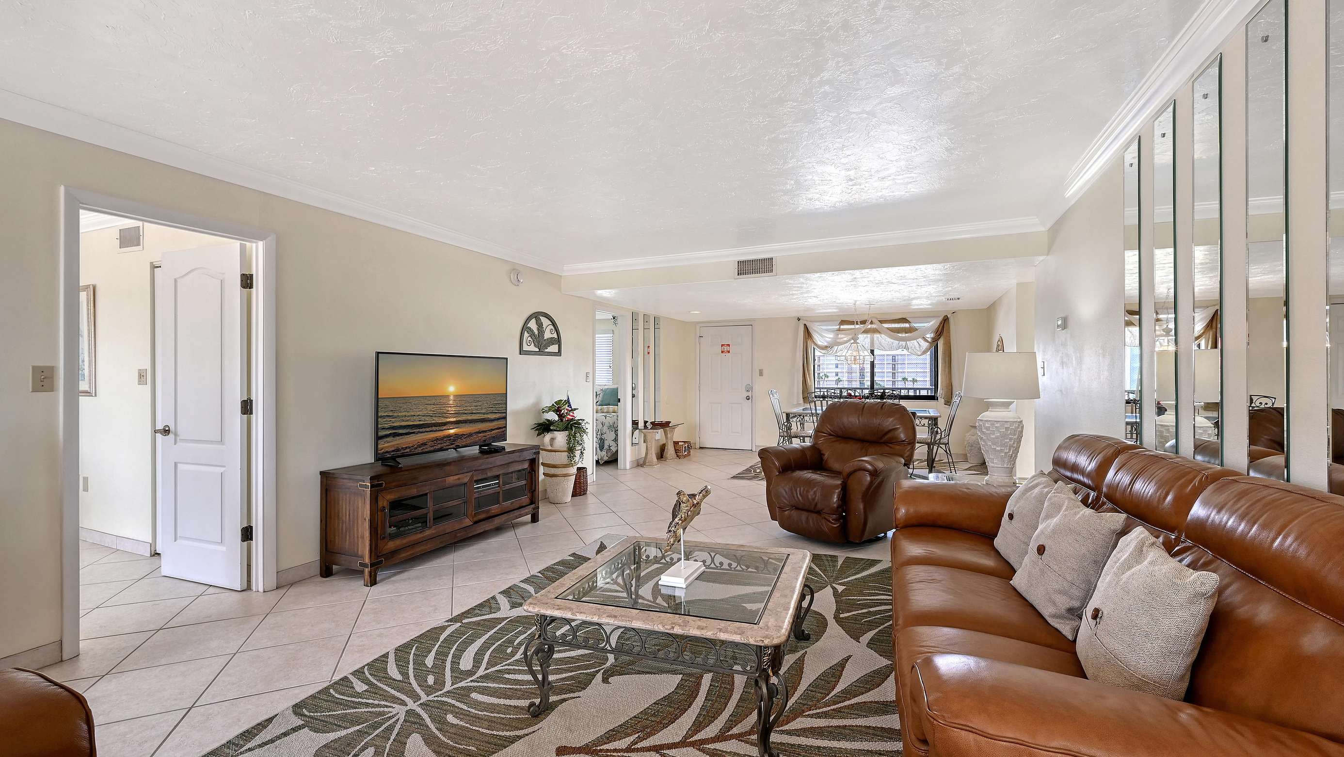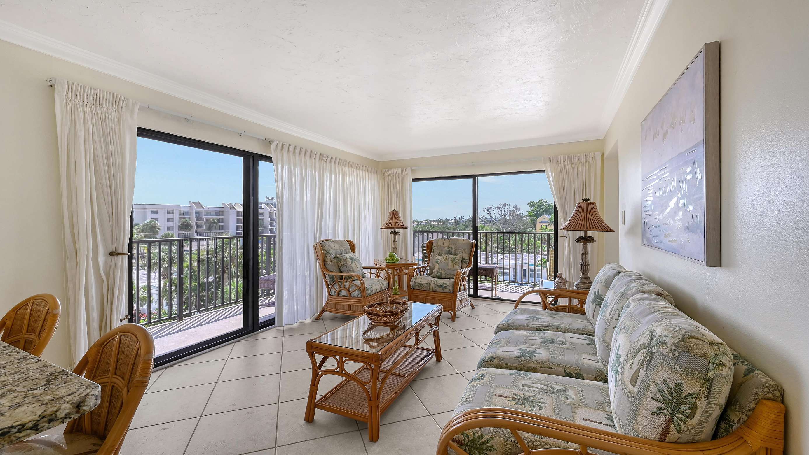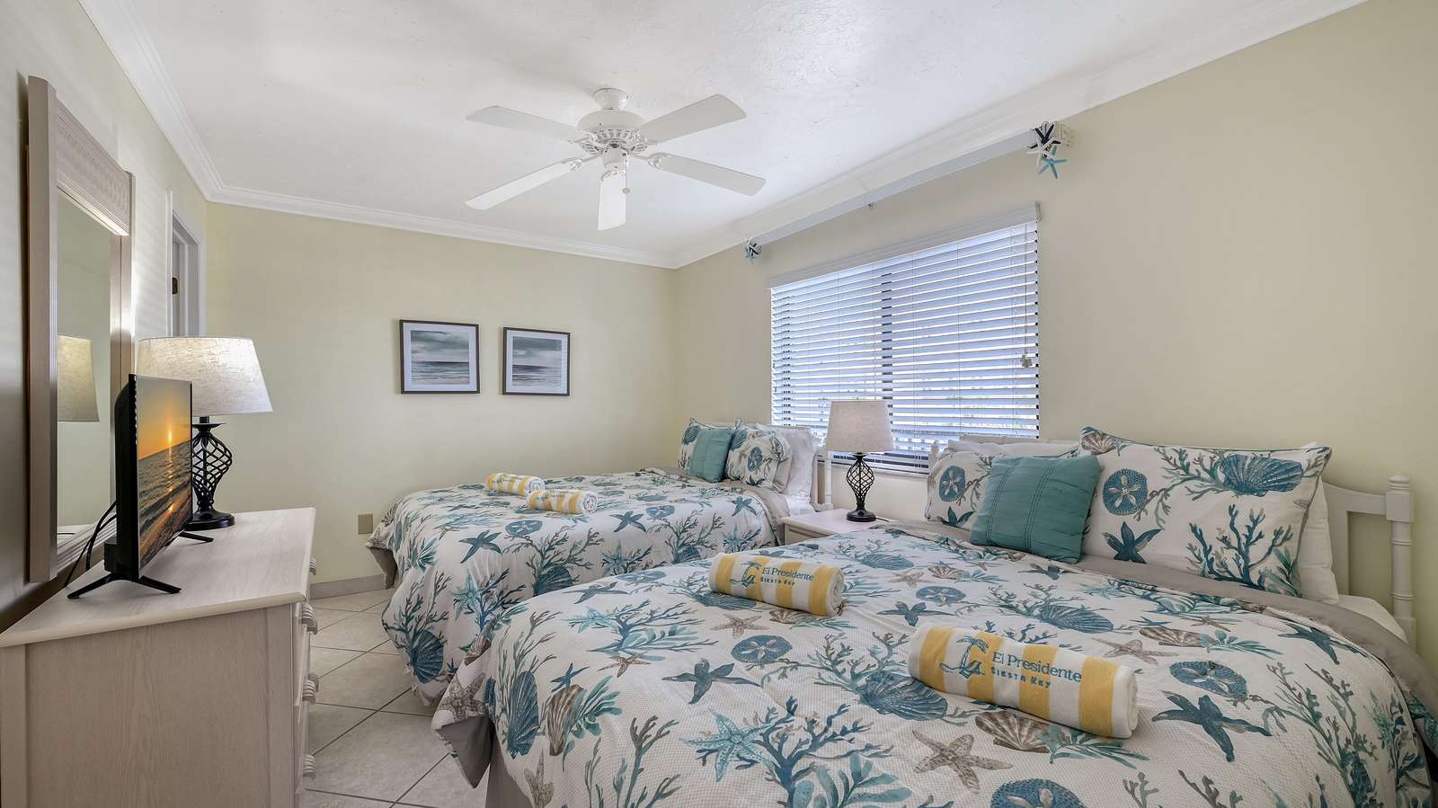 El Presidente Condominiums offers this two bedroom two bathroom vacation rental on the white sands of Siesta Key on the Gulf of Mexico